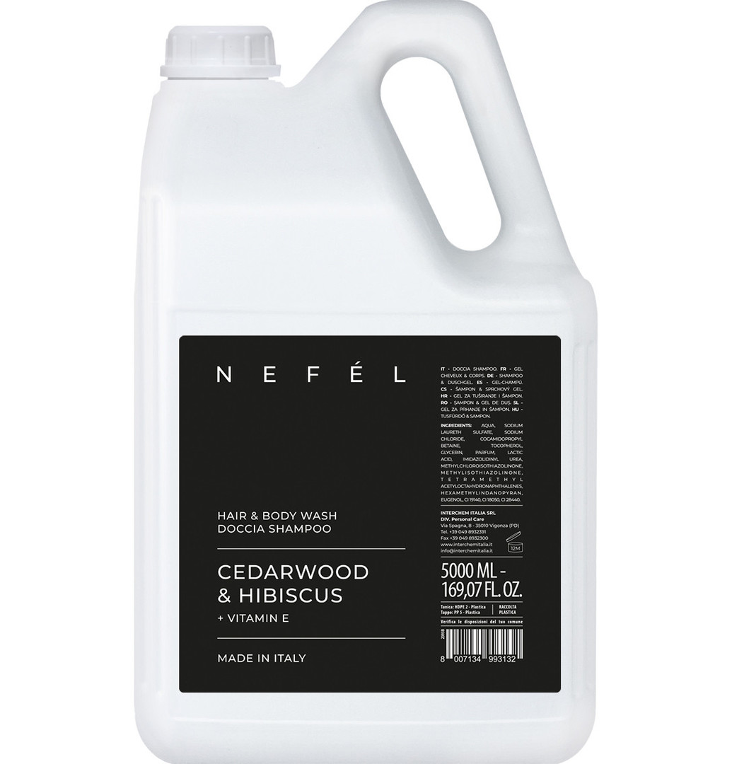 Nefel gel za telo in šampon CEDARWOOD & HIBISCUS 5 L je del prestižne italijanske blagovne znamke Nefel, ki jo razvija proizvajalec Interchem.