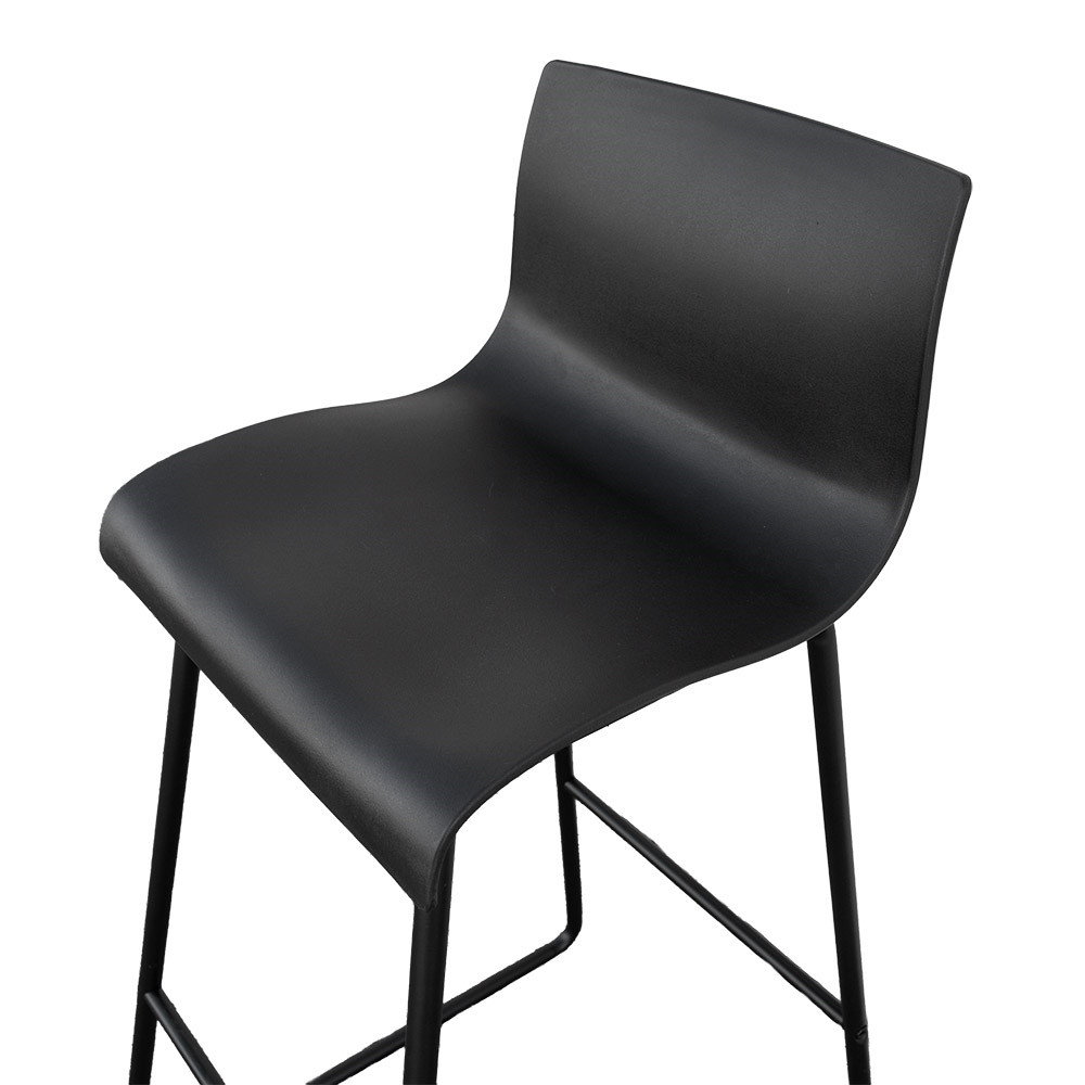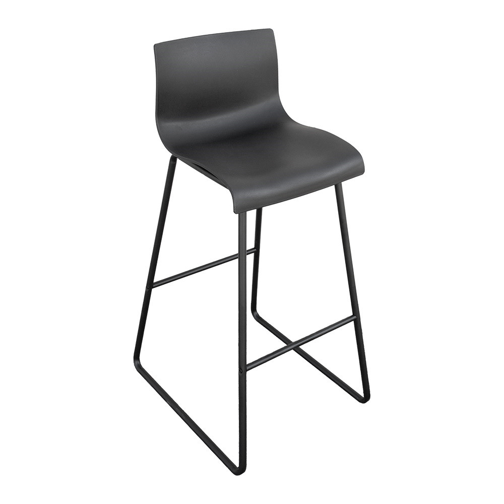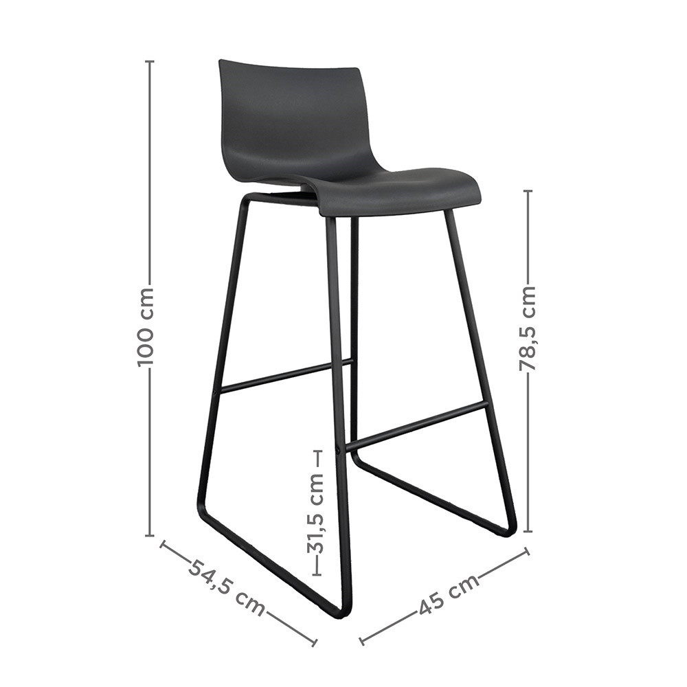 visok barski stol z naslonom, ki združuje praktičnost, stabilnost in sodoben dizajn. Narejen je iz kakovostnega polipropilena (PP) v črni barvi – materiala, ki je enostaven za vzdrževanje, odporen na vremenske vplive in primeren za intenzivno uporabo v profesionalnih okoljih, kot so bari, restavracije, hoteli ali terase. Naslonjalo omogoča dodatno oporo, kar povečuje udobje tudi pri daljšem sedenju.