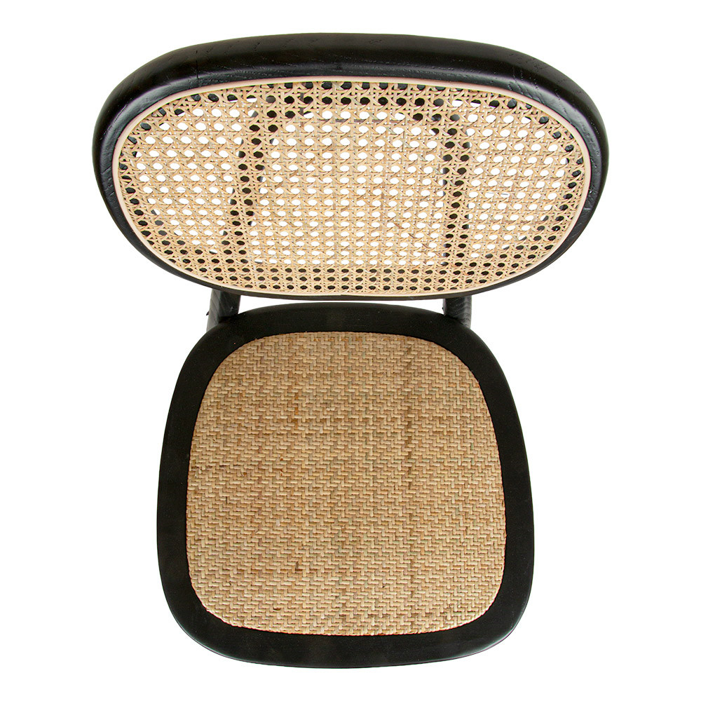 Naravni les in ratan prinašata občutek pristnosti in kakovosti, hkrati pa je oblika zasnovana tako, da zagotavlja stabilno in udobno sedenje. Kombinacija barv in materialov omogoča enostavno vključitev v različne stilne ambientne koncepte – od rustikalnih do sodobnih.