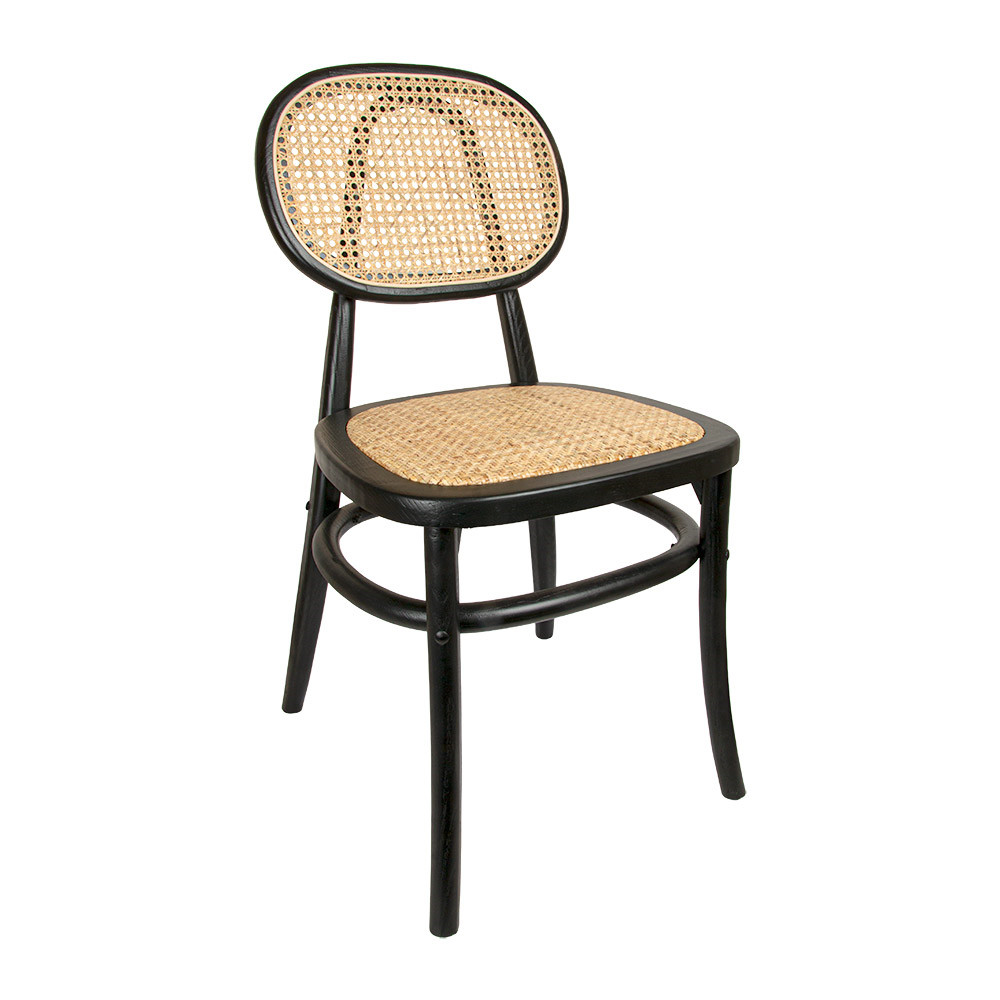 sodoben in estetsko dovršen stol, ki združuje trpežnost kolekcije SUPRA‑TEK z naravnimi materiali. Stol ima črno osnovo ter detajle iz naravnega lesa in ratana, kar mu daje topel, a profesionalen izgled, primeren za restavracije, bare, hotele, kavarne in domače prostore. Zaradi kombinacije materialov je stol robusten in primeren tako za notranjo kot zunanjo uporabo.
