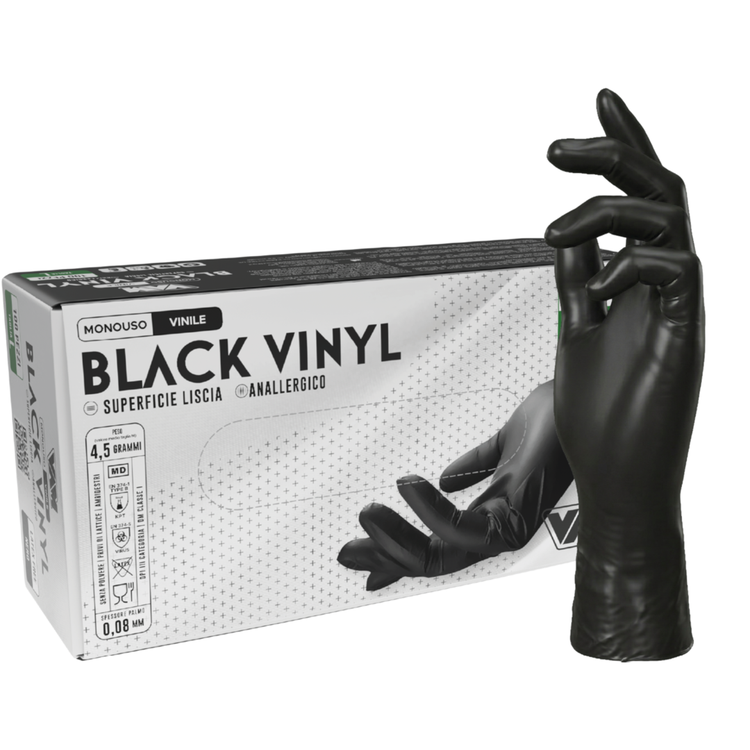 Izdelane so iz kakovostnega vinila (PVC), brez pudra, kar zmanjšuje tveganje za alergijske reakcije. Mehka in elastična struktura omogoča dobro prileganje roki ter udobno uporabo tudi pri daljšem delu. Črna barva daje profesionalen videz in je še posebej priljubljena v gostinstvu ter pri delu z živili.