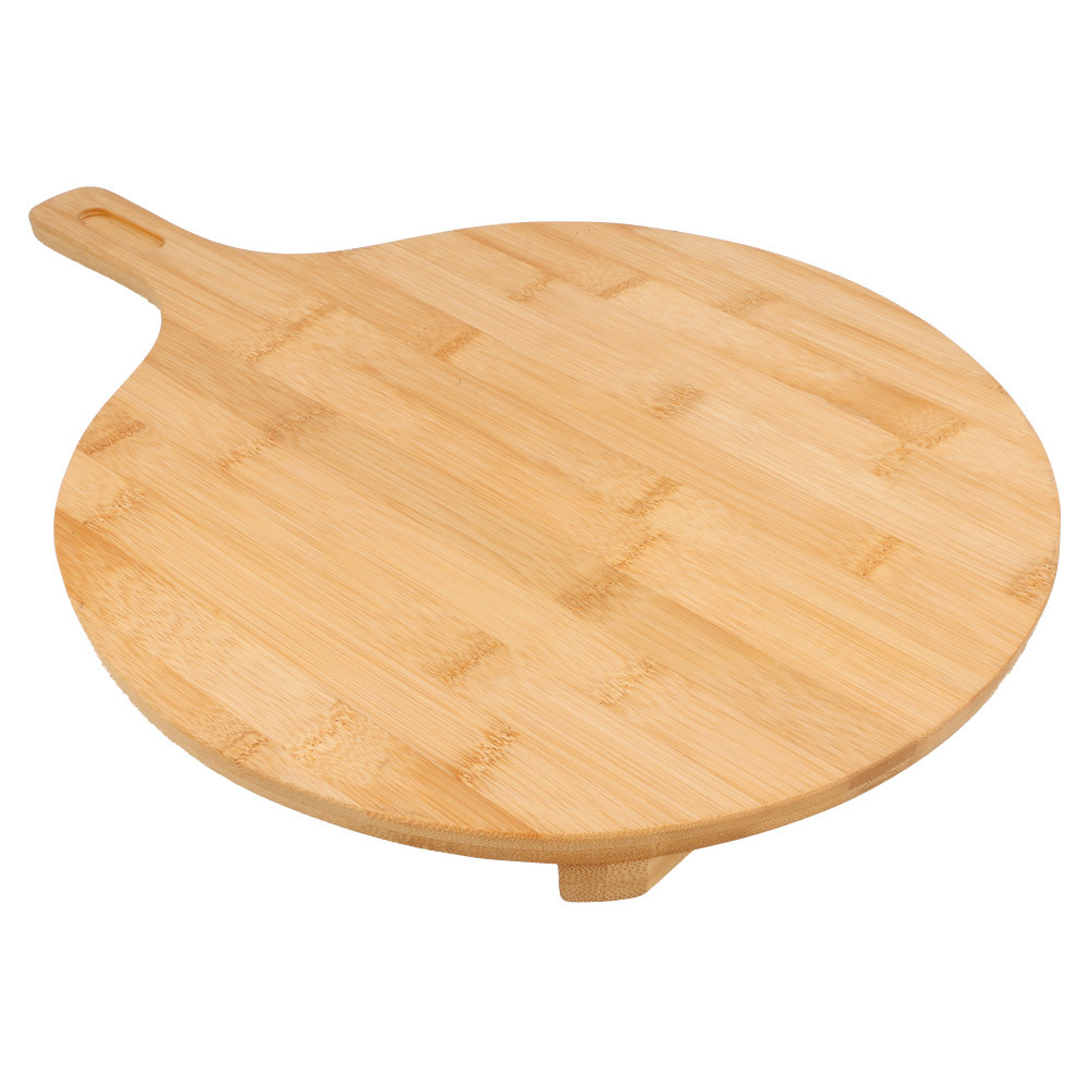 Lesen pladenj za pizzo z ročajem in nogicami BAMBOO Ø 29 × 2,5 cm (koda 199.44) je praktičen in estetsko oblikovan servirni pladenj iz kakovostnega naravnega bambusa. Namenjen je profesionalni ali domači postrežbi pizz, tapasov, prigrizkov ali drugih jedi. Zaradi integriranega ročaja in nogic omogoča enostavno prenašanje in atraktivno predstavitev jedi, še posebej v restavracijah, hotelih ali med dogodki. Bambus kot material je trpežen, odporen na olja in maščobe ter varen za stik s hrano, hkrati pa ponuja naraven in topl estetiko.