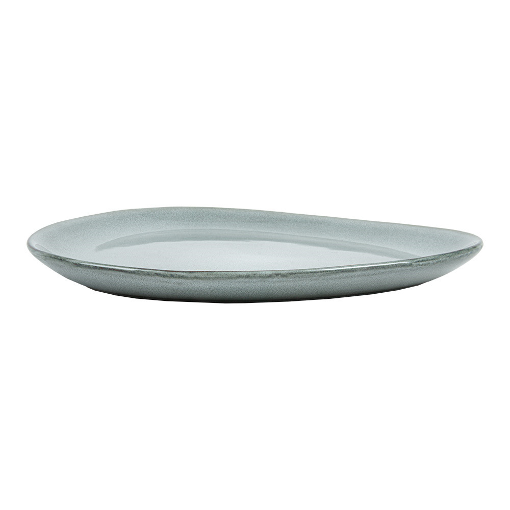 Krožnik izstopa s svojo trikotno obliko, ki omogoča kreativno in moderno prezentacijo jedi. Idealen je za serviranje glavnih jedi, predjedi ali degustacijskih krožnikov v restavracijah, hotelih ali cateringu. Zeleno-siv odtenek poudari estetiko in se odlično poda k sodobnim pogrinjkom.
