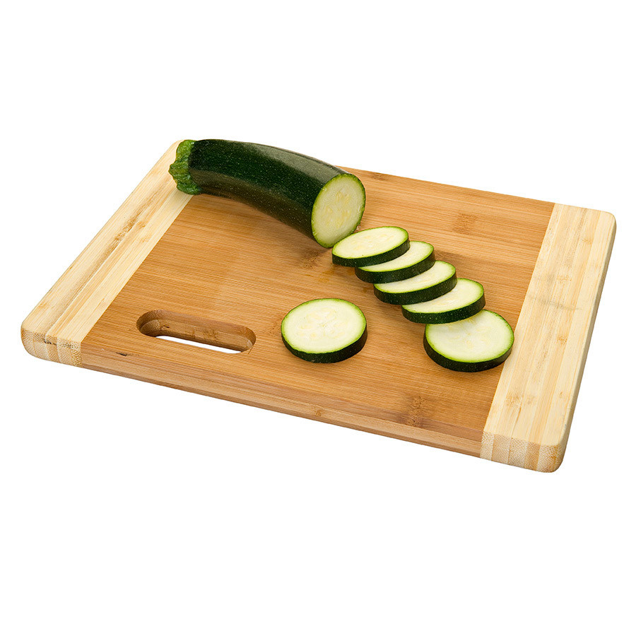 Lesena dvoslojna bambusova rezalna plošča BAMBOO 40 × 30 × 1,9 cm (koda 199.58) je vsestranski kuhinjski pripomoček, zasnovan za pripravo, rezanje in serviranje hrane v profesionalnih kuhinjah, restavracijah, hotelih ali domači uporabi. Izdelana je iz naravnega bambusa, ki je trpežen, odporen na olja in maščobe ter prijazen do nožev, kar omogoča varno in učinkovito delo s hrano. Zaradi svoje večje delovne površine je idealna za rezanje zelenjave, kruha ali mesa, hkrati pa zaradi estetskega naravnega videza služi tudi kot elegantna servirna podlaga za finger food, prigrizke ali antipaste.