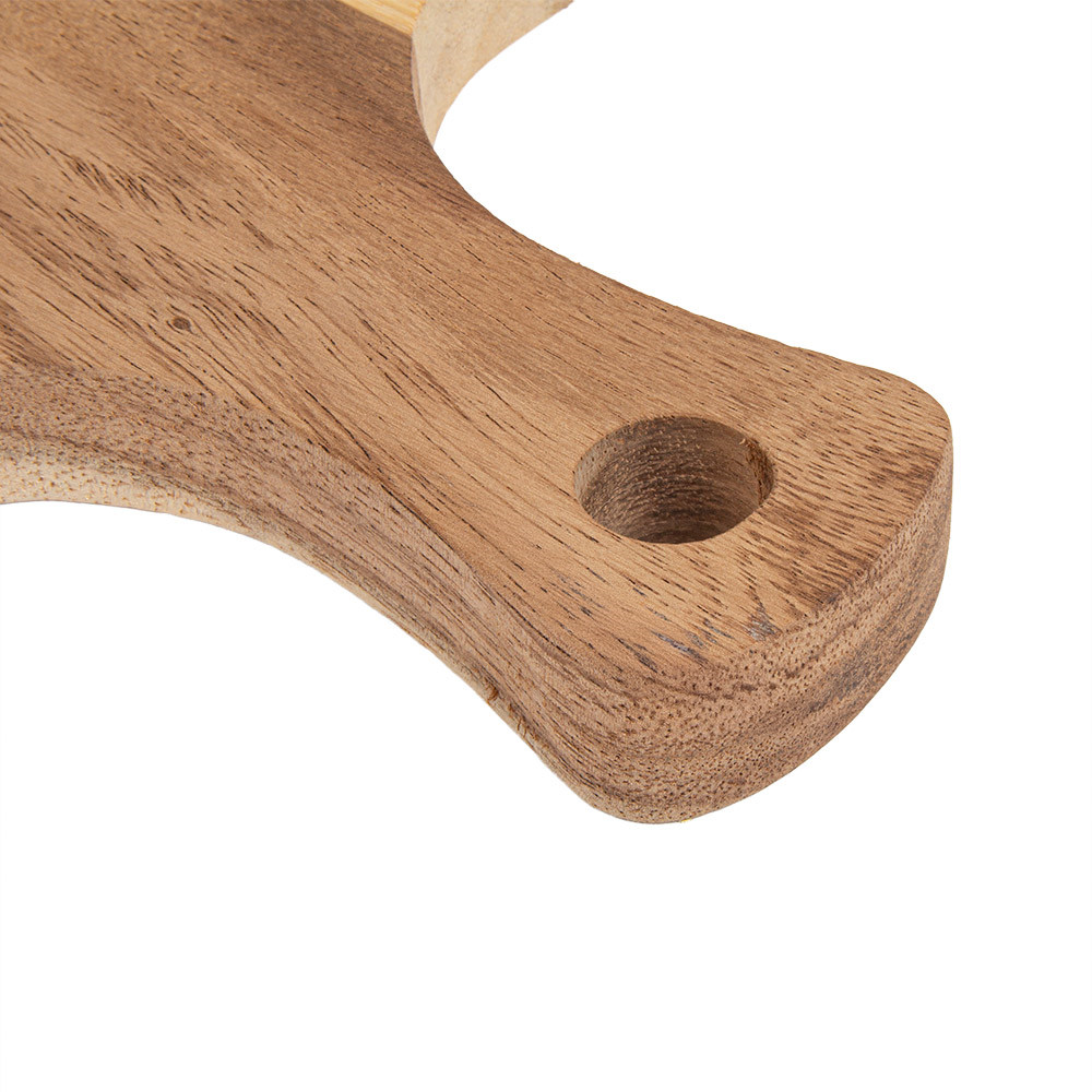 Deska je izdelana iz kakovostnega naravnega lesa, ki zagotavlja trpežnost in dolgo življenjsko dobo. Njena gladka površina je primerna za serviranje različnih jedi, kot so narezki, burgerji, pizze, prigrizki ali sladice.