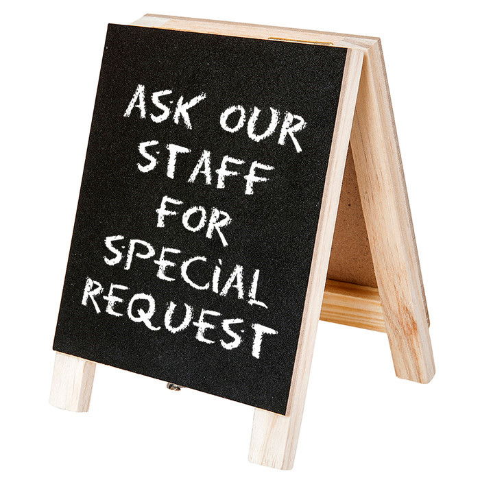 je kompaktna namizna tabla v obliki oblaka, zasnovana za prikaz cen, imen jedi, promocijskih sporočil ali kratkih obvestil. Zaradi črne površine omogoča pisanje s kredo ali markerjem, kar omogoča hitro in enostavno menjavo vsebine.