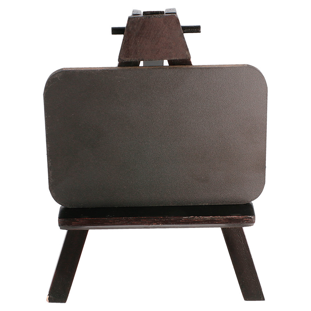 je majhna lesena namizna tabla z integriranim stojalom in črno površino, primerno za označevanje s kredo ali markerjem. Zaradi kompaktne velikosti 11 × 15,5 cm je idealna za uporabo pri označevanju cen, opisovanju jedi, prikazu dnevnih ponudb ali sporočil na mizah, pultih ali pultnih površinah v restavracijah, kavarnah, barih, trgovinah ali na dogodkih.