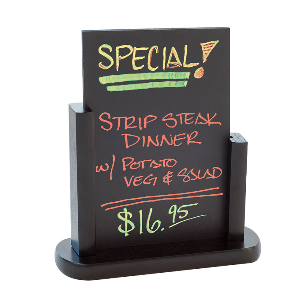 je kompaktna črna namizna tabla, namenjena za označevanje cen, jedi, promocij ali drugih sporočil. Njena elegantna črna površina omogoča pisanje s kredo ali markerjem, kar omogoča hitro in enostavno menjavo vsebine.
