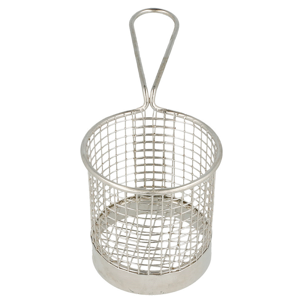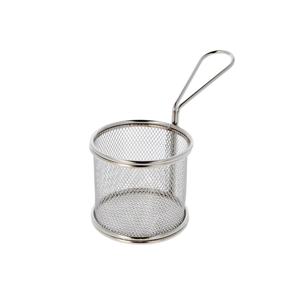 Servirna kovinska mrežasta košarica v velikosti 9 × 8 cm je praktična in elegantna rešitev za postrežbo prigrizkov, pomfrija, finger food-a, predjedi ali drugih malih jedi. Pakiranje vsebuje 6 kosov, kar omogoča uporabo v restavracijah, barih, cateringih ali domačih priložnostih.