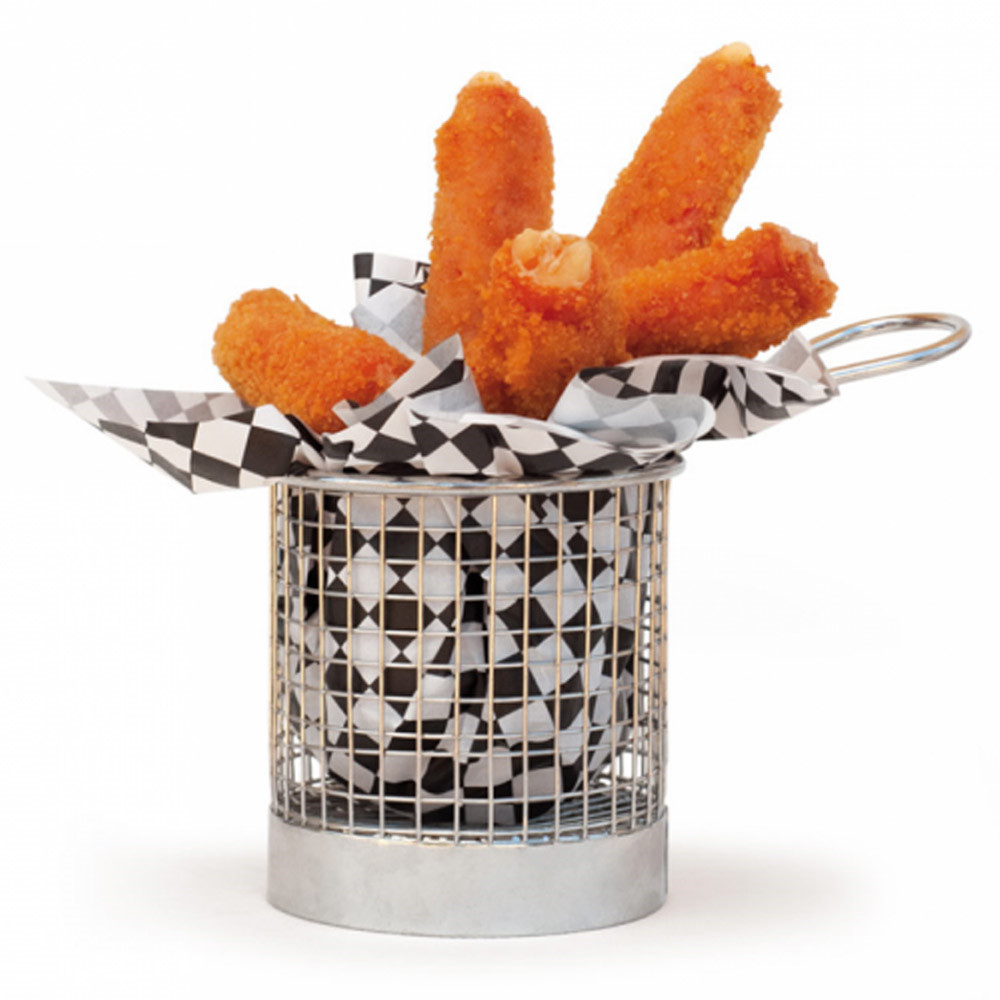 Košarice so izdelane iz nerjavečega jekla z mrežasto strukturo, ki omogoča lepo prezentacijo hrane in hkrati zagotavlja stabilnost. Zaradi kompaktnosti so primerne tudi za dekorativno postrežbo.