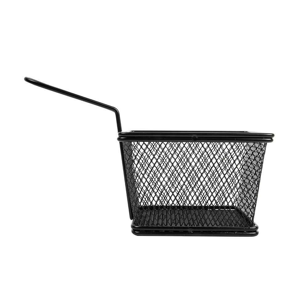 Servirna jeklena mrežasta košarica, črne barve v velikosti 12,5 x 10 x 7,5 cm je praktična in elegantna rešitev za postrežbo prigrizkov, pomfrija, finger food-a, predjedi ali drugih malih jedi. Pakiranje vsebuje 6 kosov, kar omogoča uporabo v restavracijah, barih, cateringih ali domačih priložnostih.
