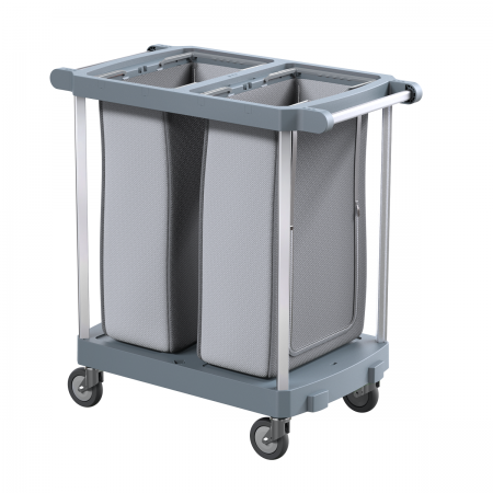 e profesionalni servisni voziček, zasnovan za uporabo v hotelih, gostinstvu (HoReCa), industriji, delavnicah in drugih profesionalnih okoljih, kjer je potrebno učinkovito zbiranje perila, odpadkov ali transport čistilne opreme. Njegova zasnova omogoča praktično organizacijo dela in hitro premikanje opreme po objektu.