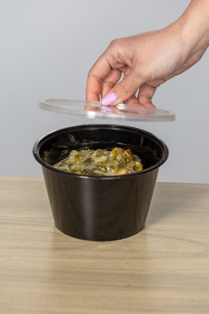 Posoda za juho črna s prozornim pokrovom iz PP materiala grškega proizvajalca Intertan 1000 mL