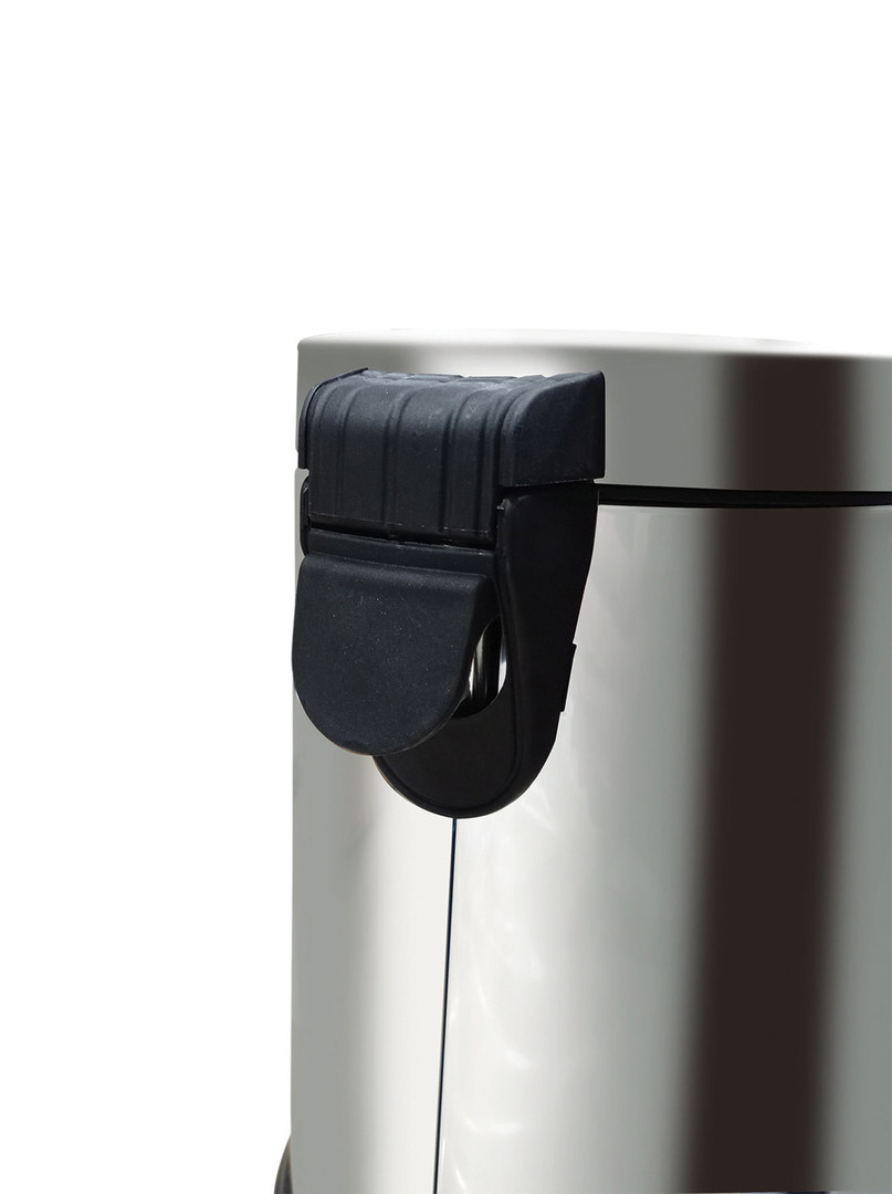 Notranji plastični vložek omogoča hitro praznjenje in enostavno čiščenje, medtem ko plastični podstavek ščiti tla pred praskanjem. Pedal s plastično oblogo omogoča odpiranje brez dotika rok, kar povečuje higieno pri vsakodnevni uporabi. Na košu je priročna ročna ročka, ki olajša premikanje po prostoru.