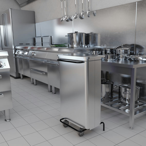 Mobilni koš za smeti CONTINOX 110 L je kakovostna in praktična rešitev za učinkovito zbiranje odpadkov v notranjih prostorih, kot so pisarne, kuhinje, sanitarije ali drugi veliki delovni prostori. Izdelan je iz AISI 430 nerjavečega jekla z visokosijajno “brilliant” površino, ki zagotavlja odličen videz in visoko odpornost na vsakodnevno uporabo.