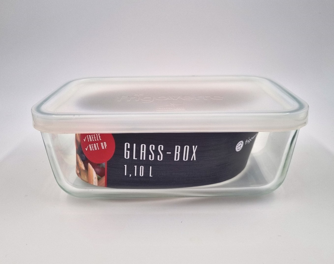 Posoda je izdelana iz prozornega stekla, ki omogoča preglednost vsebine in estetsko predstavitev. Silikonski pokrov zagotavlja tesno zapiranje, preprečuje vdor zraka ali vlage in podaljšuje obstojnost svežine živil.
