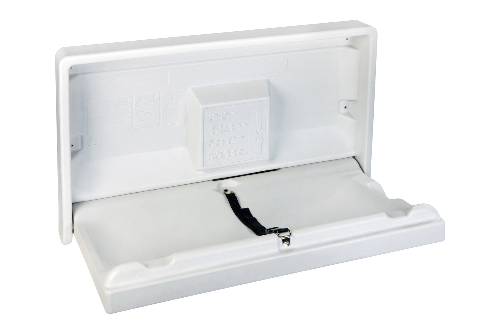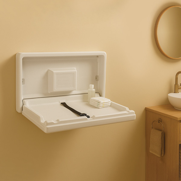 Montaža je stenska, komplet pa vključuje montažni kit in piktogram za označitev prostora za previjanje.