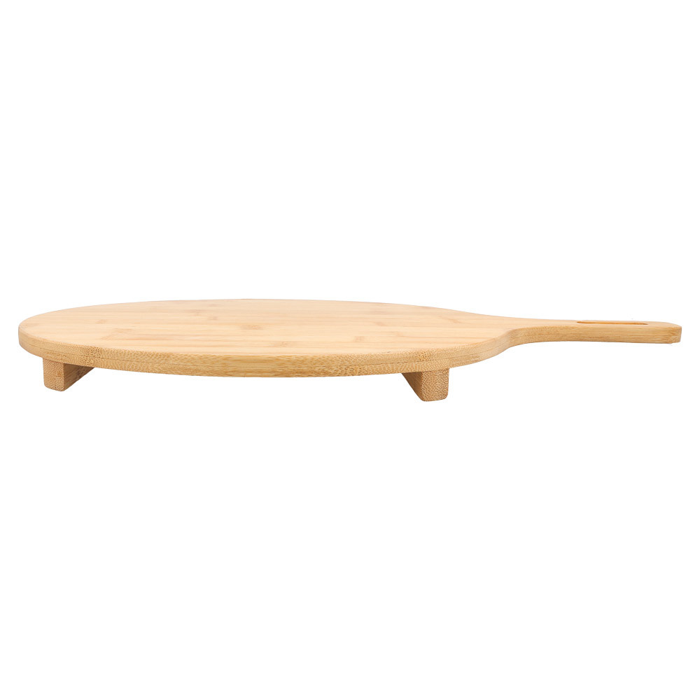 Lesen pladenj za pizzo z ročajem in nogicami BAMBOO Ø 29 × 2,5 cm (koda 199.44) je praktičen in estetsko oblikovan servirni pladenj iz kakovostnega naravnega bambusa. Namenjen je profesionalni ali domači postrežbi pizz, tapasov, prigrizkov ali drugih jedi. Zaradi integriranega ročaja in nogic omogoča enostavno prenašanje in atraktivno predstavitev jedi, še posebej v restavracijah, hotelih ali med dogodki. Bambus kot material je trpežen, odporen na olja in maščobe ter varen za stik s hrano, hkrati pa ponuja naraven in topl estetiko.