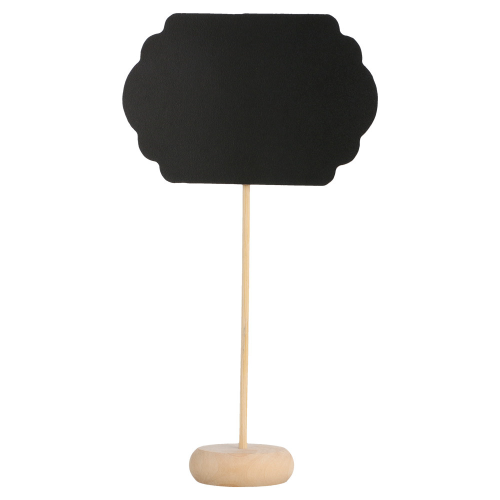 je kompaktna namizna oglasna tabla v izvirni obliki oblaka, ki je zasnovana za preprosto prikazovanje kratek sporočil, cen, simbolov ali opozoril na mizah, pultih ali pulti — v gostinstvu, kavarnah, barih, hotelih ali trgovinah. Zaradi balonaste oblike in črne lesene površine pritegne pogled in omogoča kreativno izražanje mini informacij, na primer označevanje lastnosti jedi, cen ali smernic. Tabla stoji na stojalu in je primerna za vpis s kredo ali dvostranskimi markerji.