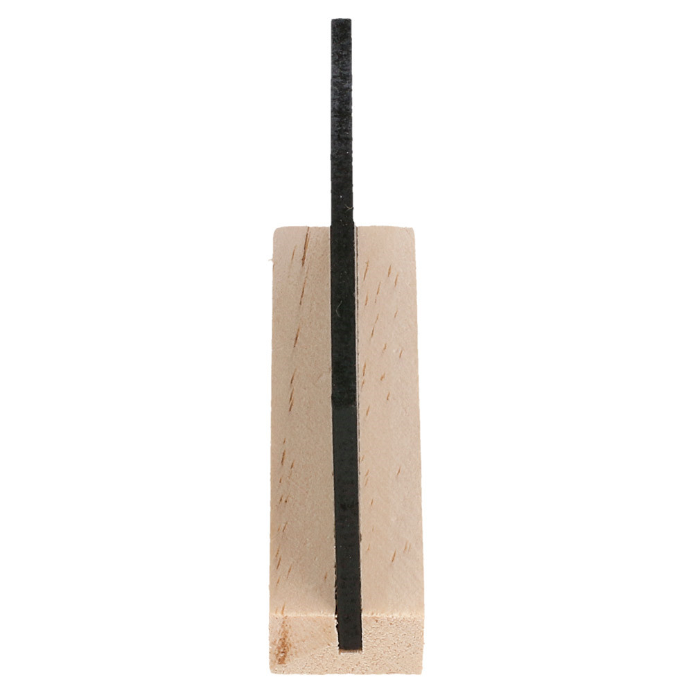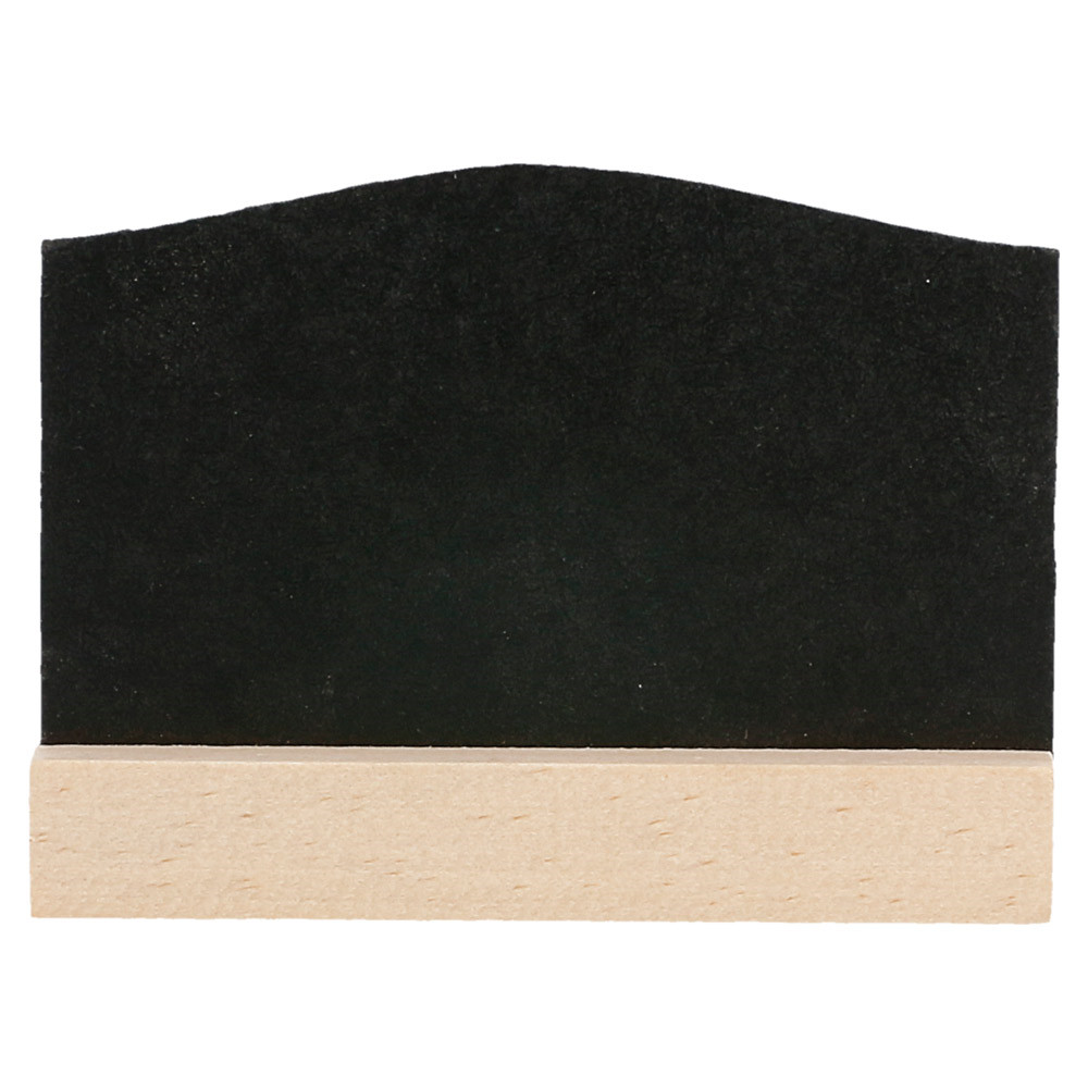 je majhna lesena namizna tabla s praktično vpenjalno sponko, namenjena prikazovanju drobnih obvestil, cen izdelkov, dnevnih menijev ali promocijskih sporočil na mizah, pultih ali pultnih površinah v restavracijah, kavarnah, barih, hotelskih recepcijah ali trgovinah. Zaradi svojih kompaktnih dimenzij 7,5 × 5 cm je idealna za uporabo kot namizni info‑zabojček ali označevalna tablica za goste in osebje.