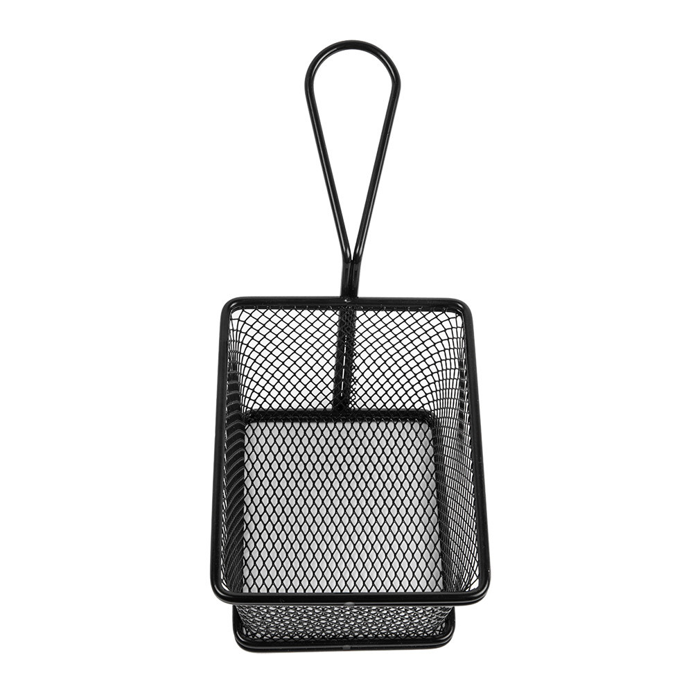 Servirna jeklena mrežasta košarica, črne barve v velikosti 12,5 x 10 x 7,5 cm je praktična in elegantna rešitev za postrežbo prigrizkov, pomfrija, finger food-a, predjedi ali drugih malih jedi. Pakiranje vsebuje 6 kosov, kar omogoča uporabo v restavracijah, barih, cateringih ali domačih priložnostih.
